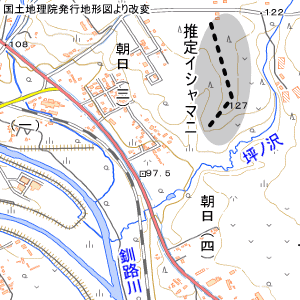 弟子屈の坪ノ沢は松浦武四郎の安政5年の記録でイシヤマニウンナイとされ獺の伝がある。エシヤマルンナイともされる。今の坪ノ沢の落ち口から450mほど遡った右岸の朝日三丁目の裏手に小幌のエサマニや様似のエンルム岬同様に90度に近い角度で曲がった出尾根の末端がある。この出尾根は釧路川の端から見えるはずである。上流へはこの出尾根を回り込んで入っていく。この出尾根が e- sama -n -i で、坪ノ沢は〔e- sama -n -i〕e- aun nay[エサマニ・そこに・入る・河谷]と考える。