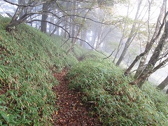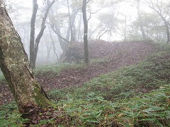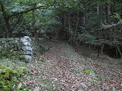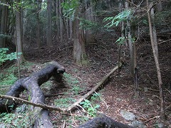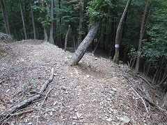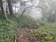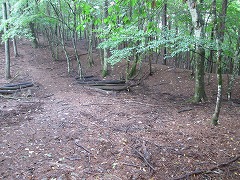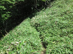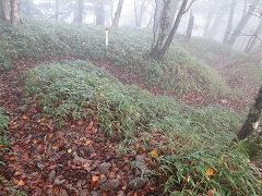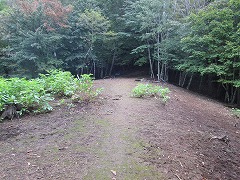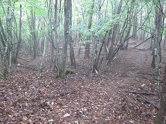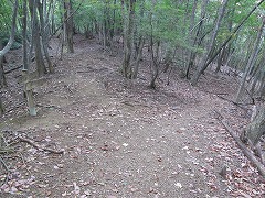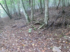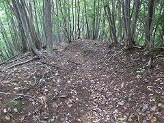 ![]() 1352東鞍部 広い尾根筋に畔のような旧路盤 |