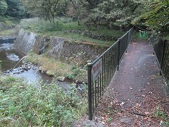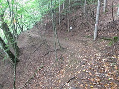 ![]() 右から斜面を下り切って 振り返ると左に旧路盤 |