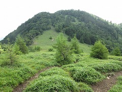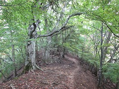 ![]() 熊沢山から南方を見る 石丸峠は手前右手の 笹原からスカイライン左の コブの後ろへ 右のコブは天狗棚山 |