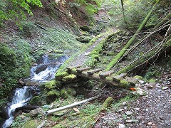 ![]() 水場の谷に入る所の桟 |