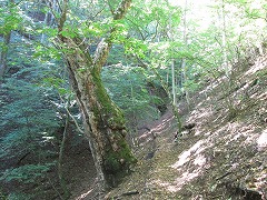 トチ巨樹コースも山沢から大ダワへの古道を元にしているか、「ヤモリの尾根」とはヤモウ尾根ではなくトチ巨樹コース上のどこかということもありうるかと考え辿ってみた。