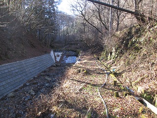 小菅大菩薩の山沢登山口から山沢川の二股までの川沿いは護岸と整地で古い道の痕跡が窺えない。或いは丸木一本の橋の跡のすぐ上から今の車道と同じだったのか。