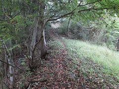 ![]() 右から斜面を下り切って 振り返ると左に旧路盤? |