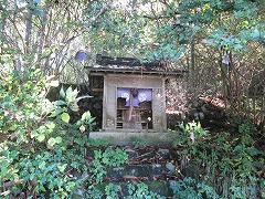 狩場山(1376m)は路盤は山頂を通らないが一帯にヤブは無く山頂に標識だけがある。狩場山の辺りは栗の木が多い。狩場山を下りた鞍部の手前に炭釜が二基ある。鞍部は棚倉沢沿いに小菅川まで下りていく道の分岐するショナメと言われる所で、鞍部の東側の道の北側に基壇のような石組がある。石組の上に白樺の若木が一本生えており、石組を崩して散らかしたように石が道に散乱している。通った時は或いは狩場明神社があった所かと考えたのだが、帰宅して岩科「大菩薩連嶺」を読み返すと場所が大部違う。これも炭釜の跡なのだろう。ショナメは小菅村郷土小誌の地図で「辷場」とある所のようで、フリガナがないが「すべりば」だったのが訛って「ショナメ」なら、元は「すみ(炭)・にば(荷場)」で、山の炭荷の集荷地点、牛ノ寝通りで生産された炭の出荷地点として名付けられたか。